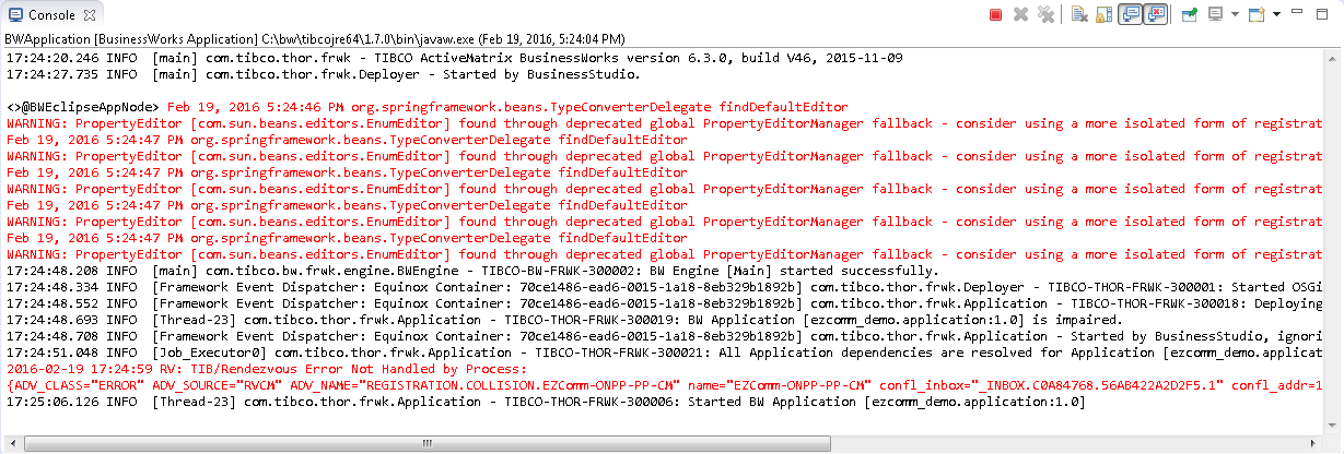 2. Click BusinessWorks Application > BWApplication in the left panel.