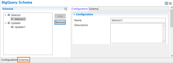 Once you create a schema in the Schemas tab the Configuration and Schema tabs appear where you can add an entity.