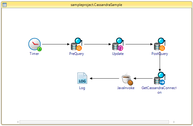 The CassandraSample process is used to show the general configurations of Cassandra activities.