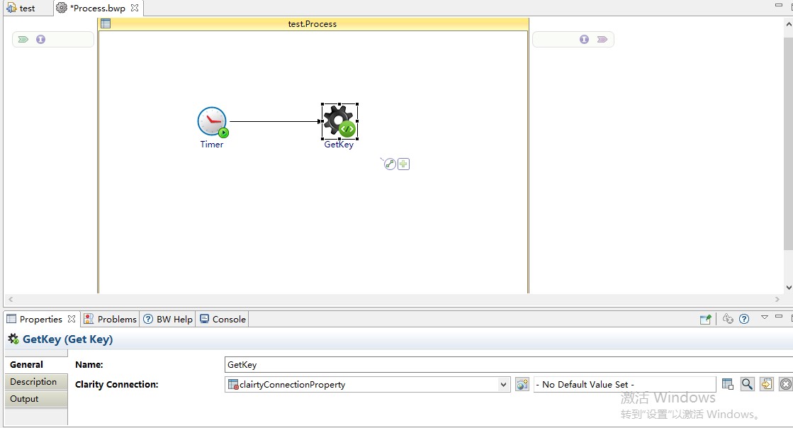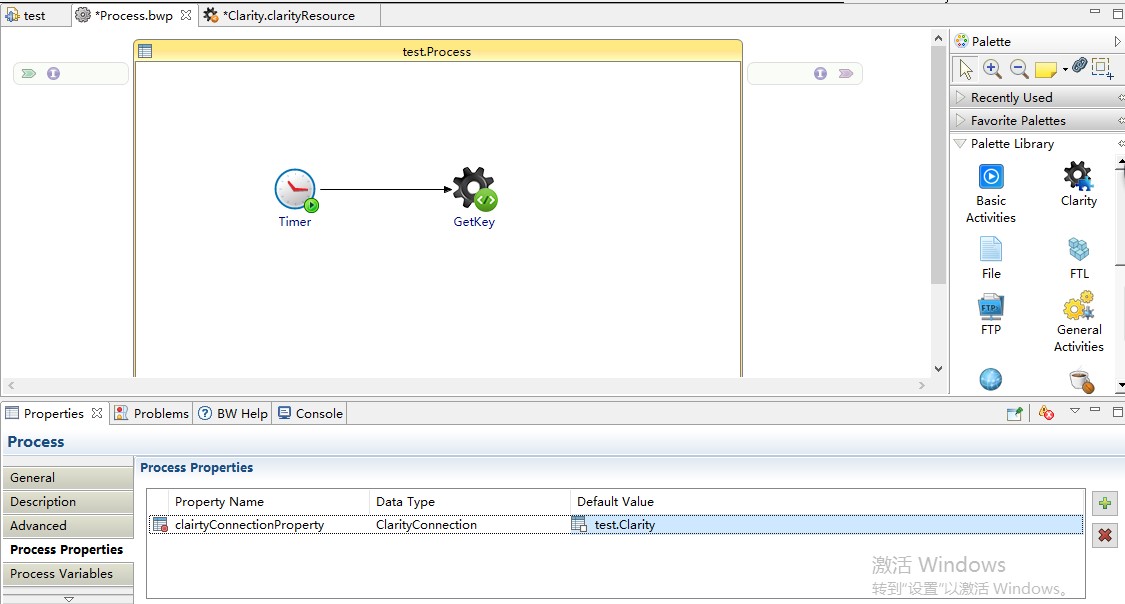 For example, select and drop the Timer activity from the General Activities palette and the GetKey activity from the Clarity palette.