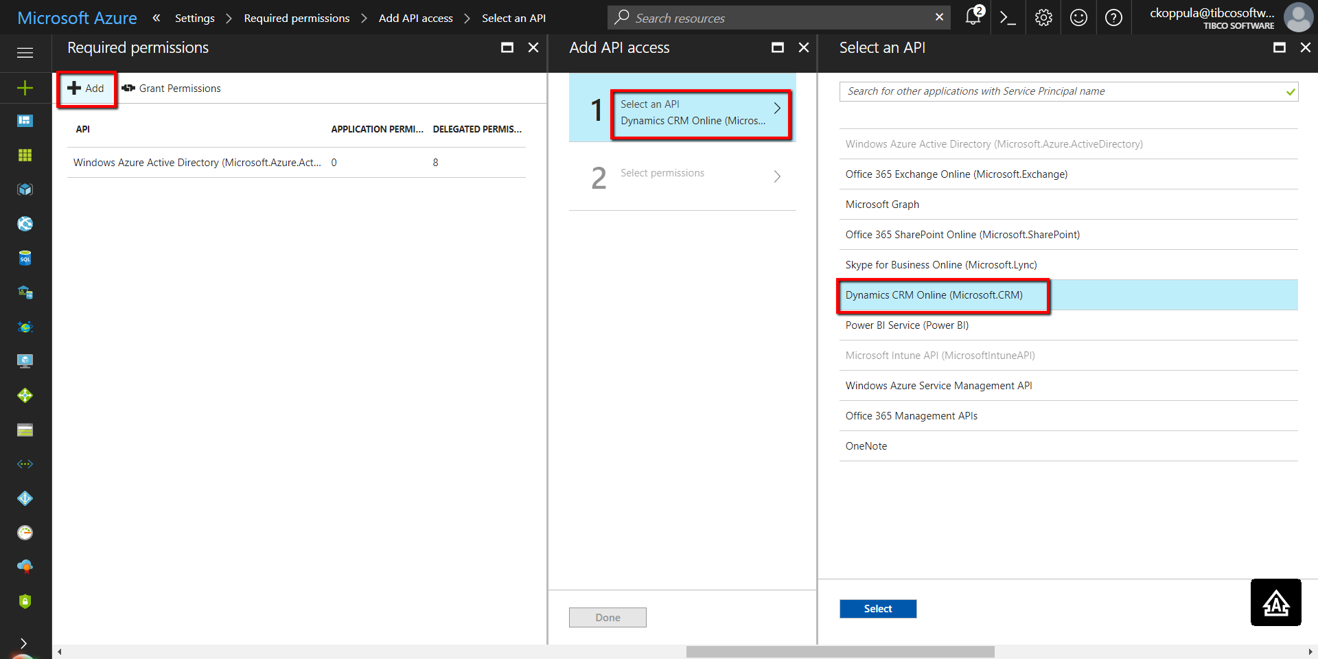 To give user permissions for the registered native or Web app/API application in Azure Active Directory: