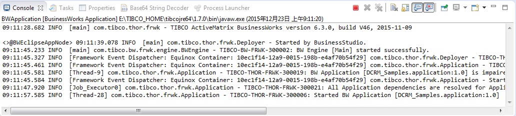 2. Click BusinessWorks Application > BWApplication in the left panel.