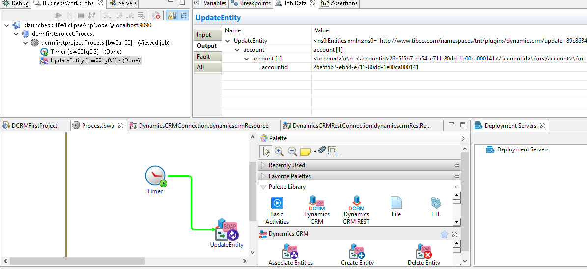 5. In the upper-right corner, click the Job Data tab, and then click the Output tab to check the activity output.