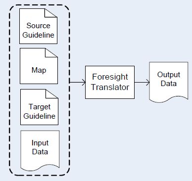 You can use Translator to translate the input data in one format to a new file in another format. The following figure shows the translation workflow.