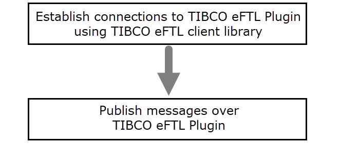 The eFTL Publisher is an asynchronous activity that takes input from the shared resource and publishes or sends messages to the TIBCO Cloud Messaging service.