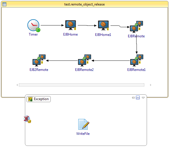 EJBRemote1 | is activity invokes a remote method on the remote object which is created by the EJBHome1 activity. The Release Remote Object check box is clear in Advance tab of this activity. |
