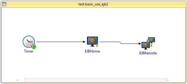 The basic_use_ejb2 process shows how to perform a lookup of an EJB 2.x home object, create a remote object, and invoke a remote method.