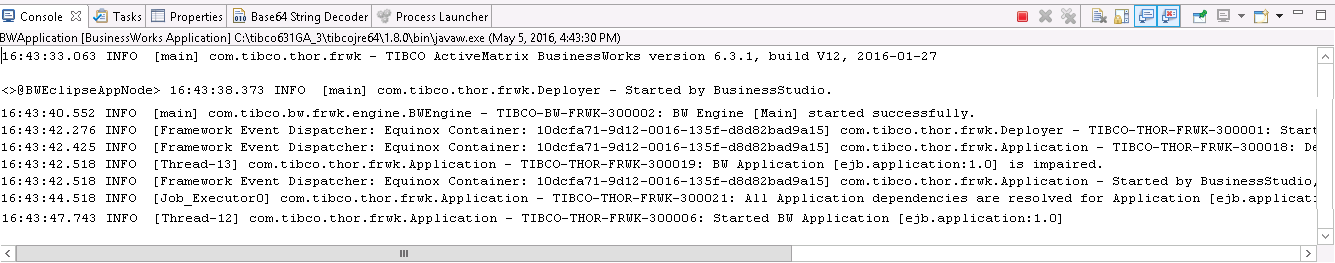 BusinessWorks Application > BWApplication in the left panel.
