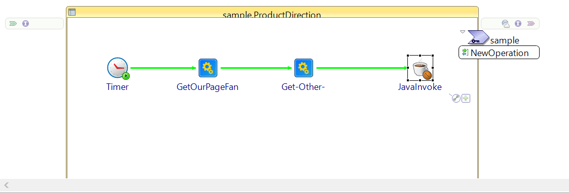 The ProductDirection process is the top-level process. It determines which company fans are also fans of the National Weather Service, and compares the two numbers. If more than 50% of the company fans are also passionate about weather, the process gives a green light for production of the new product.