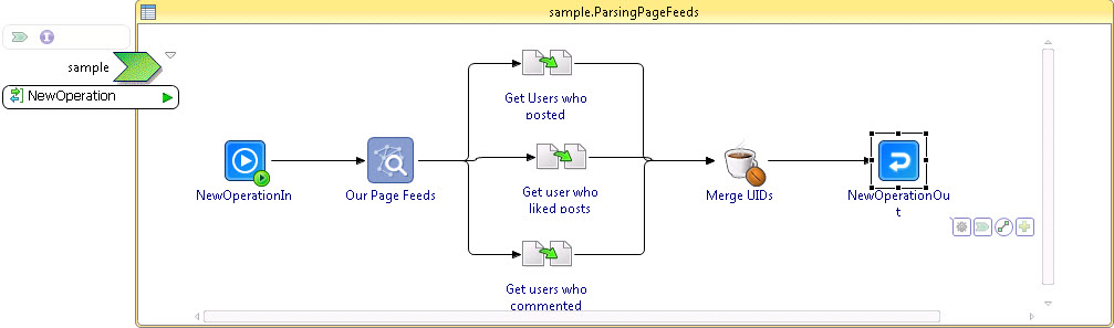 Our Page Feeds | Extracts the company's page feed(GetOurPageFans) or extracts the National Weather Service page feed (Get-Other-Page-Fans) and passes it to three Mapper activities. |