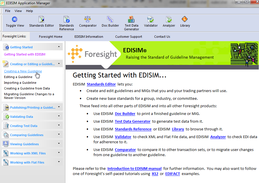 - Click the Standards Editor link on the right panel. The Empty Guideline - EDISIM window appears.