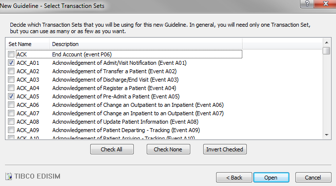 c. Click the Next button. The New Guideline - Select Transaction Sets dialog appears.