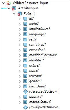 Use the Validate Resource activity to validate a FHIR resource against the published FHIR schema for that resource.