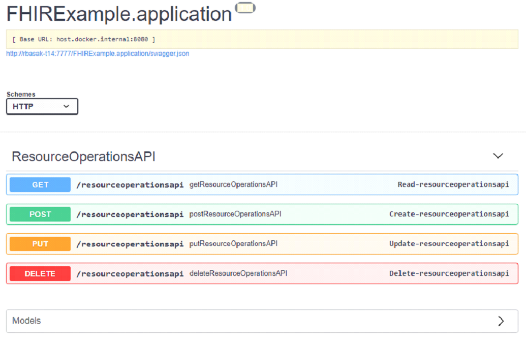The ResourceOperations API process illustrates how to create, read, update, and delete the FHIR resource via REST APIs.