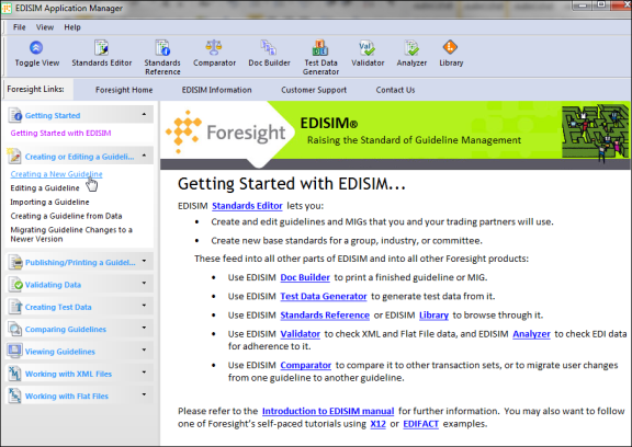 - Click the Standards Editor link on the right panel. The Empty Guideline - EDISIM window opens.