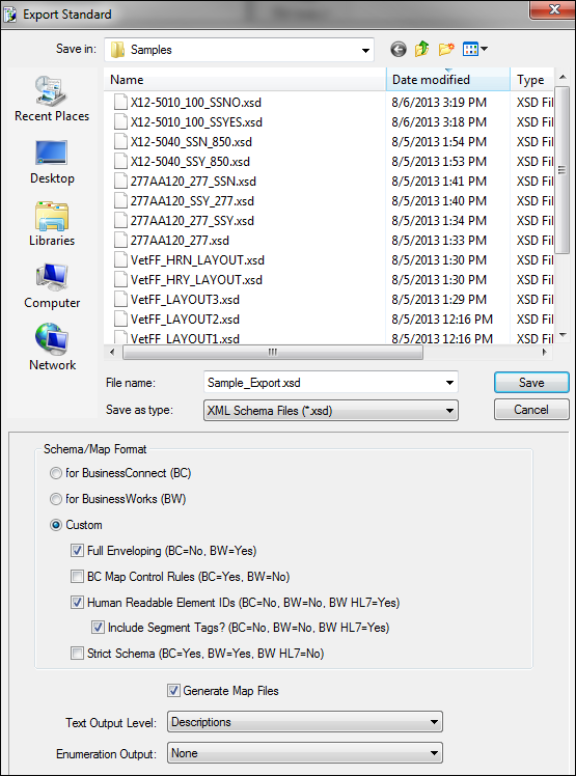 - Click Save to save the file. An XSD file and a MAP file are generated.