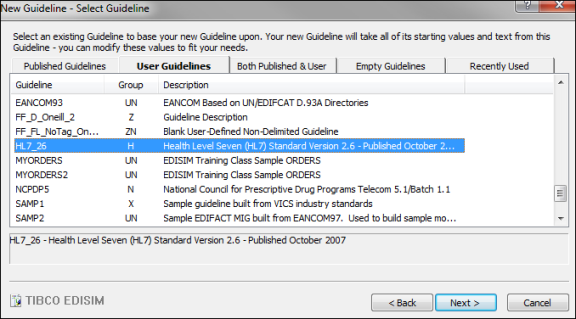 - Select from the Empty Guideline - Edisim window. The New Guideline - Select Guideline dialog box opens.