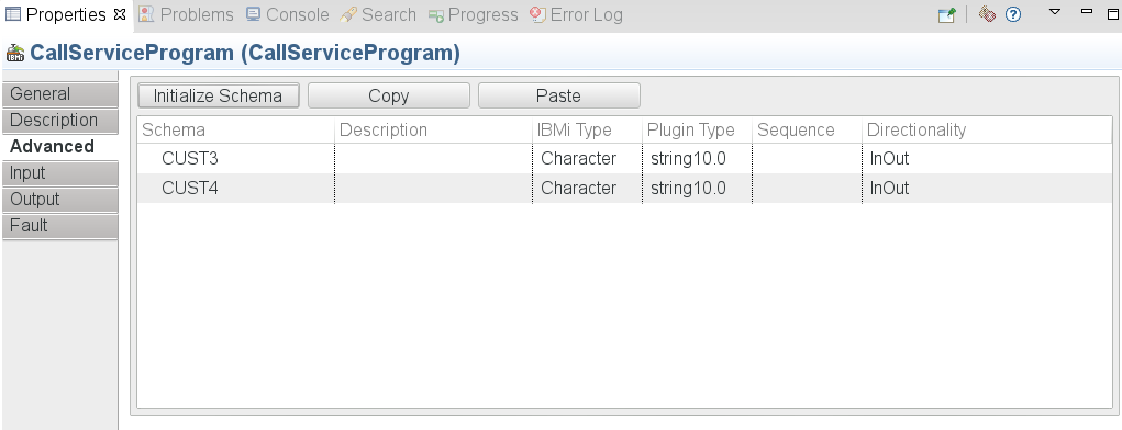 TIBCO ActiveMatrix BusinessWorks Plug-in for IBM i allows you to customize the message schema in the Advanced tab.