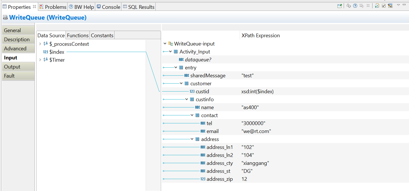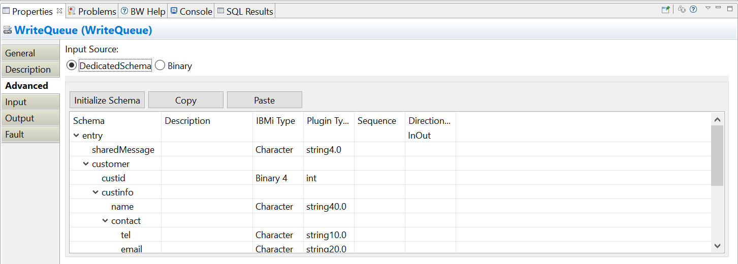 Advanced tab, declare the schema for the input message of the data queue. In the schema, add a field to identify the