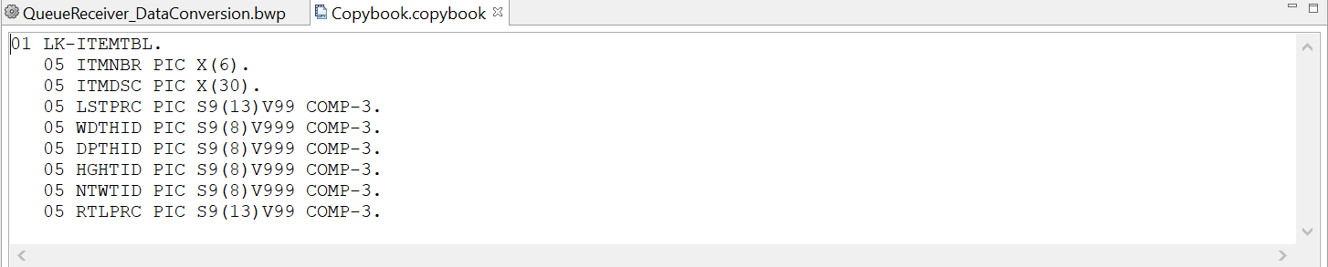 - The Copybook is defined in the Resources.