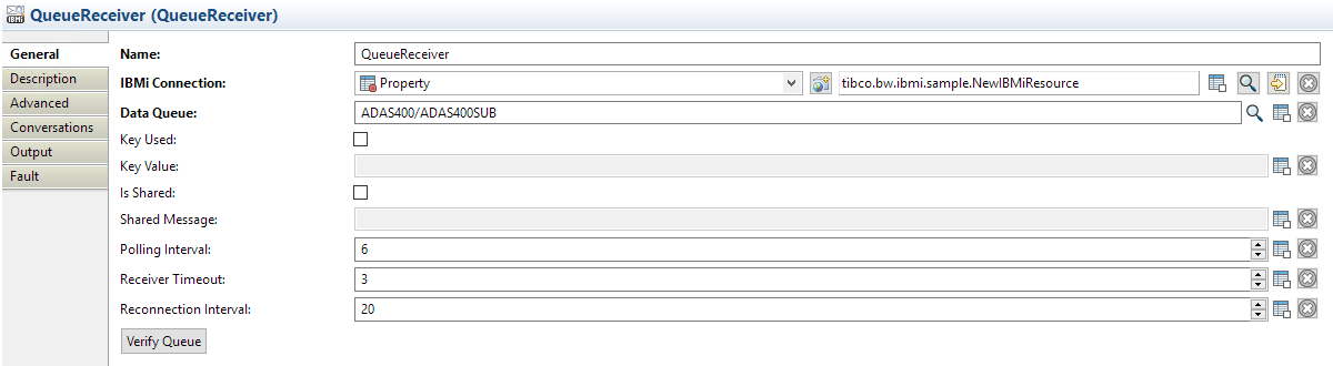 After the configuration, click Verify Queue to test whether the specified configuration fields result in a valid connection to an IBM i system.