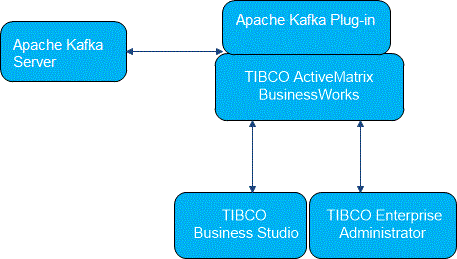 - TIBCO ActiveMatrix BusinessWorks™ Plug-in for Apache Kafka communicates with the Kafka server instance.
