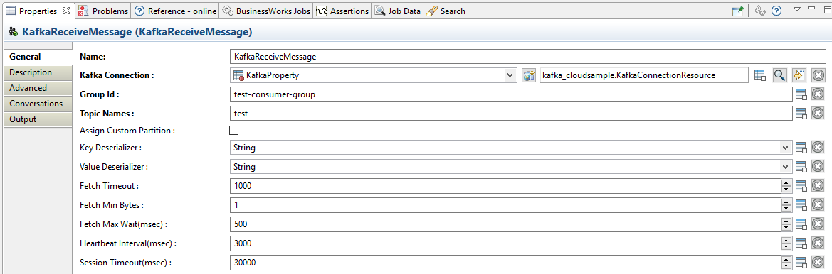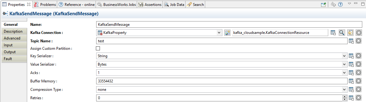 This process demonstrates how to use the plug-ins to send messages through the producer using Kafka server. JavaInvoke activity is used to invoke the Java class method. It returns the message, which is read by SendMessage activity.