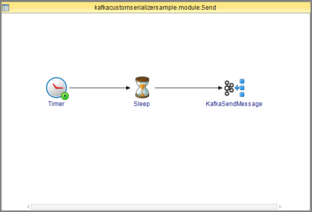 The Send.bwp process demonstrates how custom serializer is added to the Send activity to serialize the message. On the Advanced tab in the Properties field, a value.serializer property is configured as an additional property. This property lets the Send activity use the class for serializing the message. For example, Google Protocol Buffer is used to serialize the message from a Person objects (defined in the PersonProtos.java file in the src folder) JSON representation to a byte data.