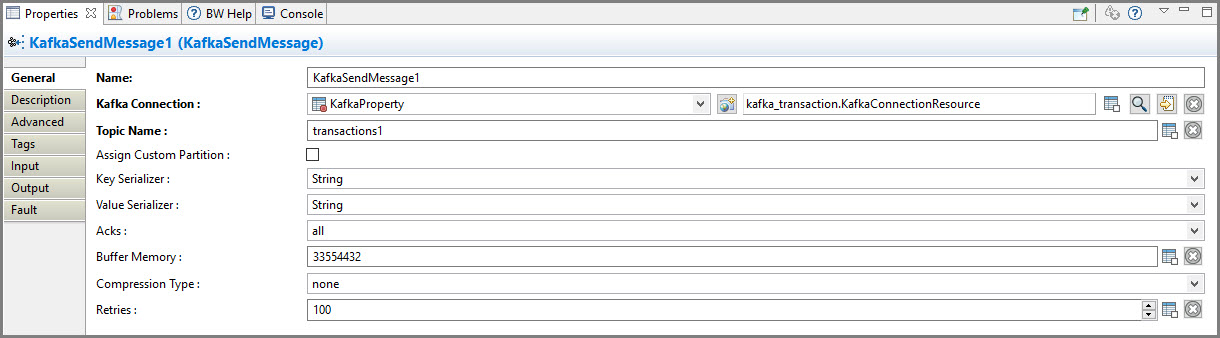 This process demonstrates how to use the Kafka ReceiveMessage activity to receive transactional messages. In the Advanced tab, the isolation level is configured to read_committed which ensures that the activity will receive only those messages which are successfully committed during the transaction.