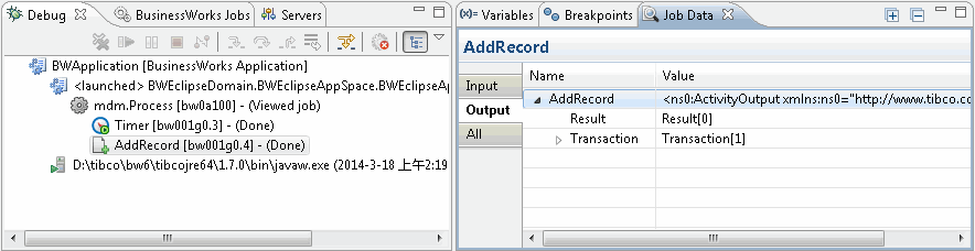 After debugging the application, you can check the output of the activities in TIBCO Business Studio.