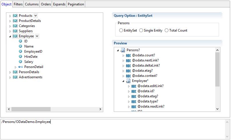 Resource type represented by tree nodes can be divided into 3 classes: Entity Set , Property and Navigation Property.