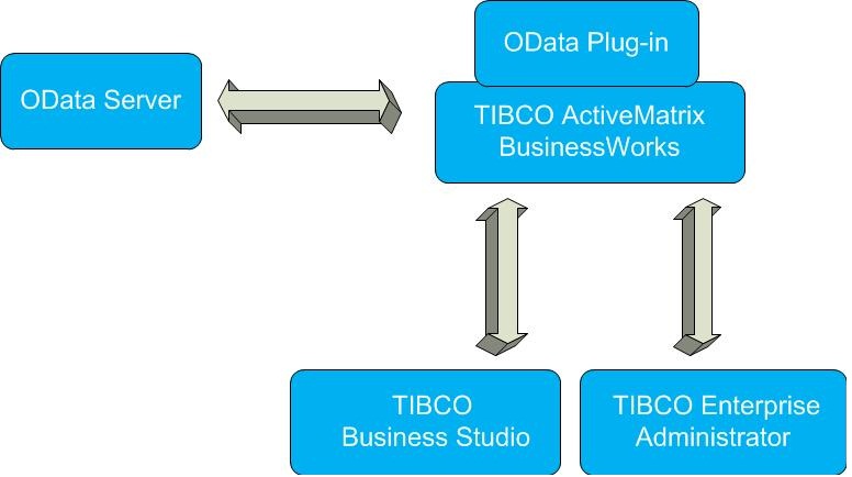 TIBCO ActiveMatrix BusinessWorks Plug-in for OData plugs into TIBCO ActiveMatrix BusinessWorks™. The following figure shows how the plug-in works with the TIBCO products.