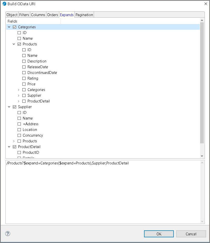 JavaScript must be enabled in order to use this site.Please enable JavaScript in your browser and refresh the page. Expands Tab In the Expands tab, selected items are displayed after the $expand query option in query URI at the bottom. The following figure is an example of the Expands tab. Note: The Expands tab now supports nest expanding. Copyright © 2021. Cloud Software Group, Inc. All Rights Reserved.