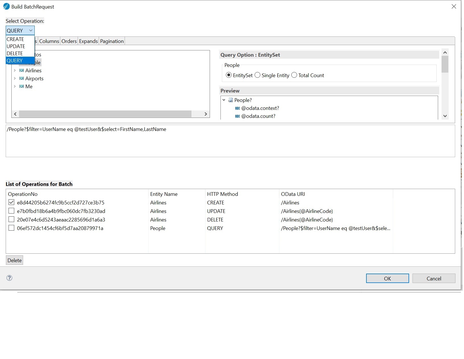 In the Batch Request Builder dialog that opens, from the Select Operation drop-down list, select the required operation.