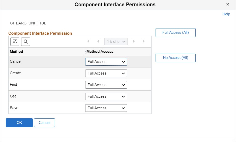 - Edit each component interface and grant Full Access permissions to all its methods.
