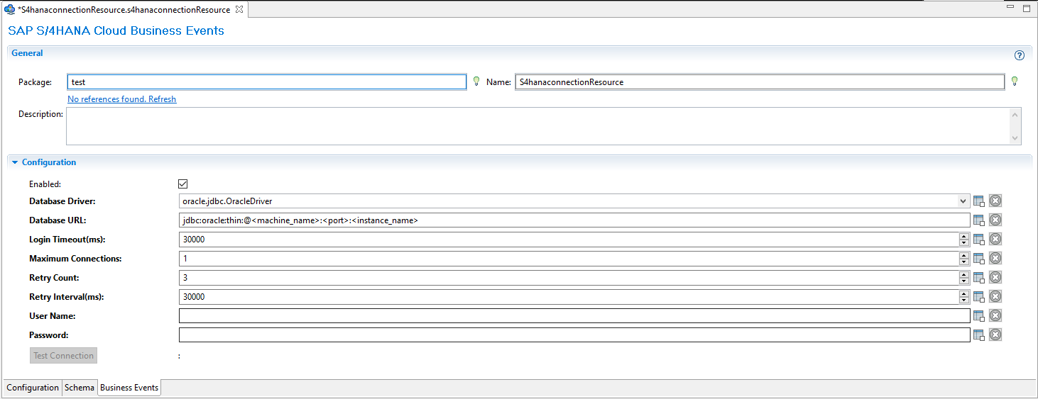 Note: Prior to configuring the Business Events tab, ensure that the database planned to be used is initialized accordingly using the initialization scripts provided in the plug-in tools folder. An initialization script is provided for each supported database.