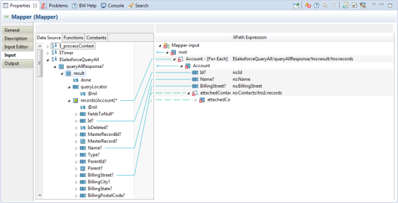 Mapper is a general activity defined in TIBCO ActiveMatrix BusinessWorks. It is used as the data consumer of the Salesforce Query activity.