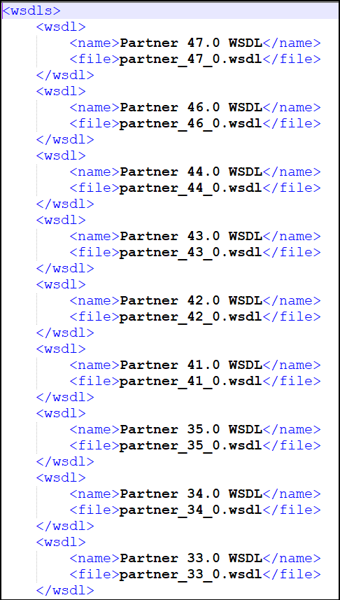 SalesforceWSDLs.xml file, as shown in the following figure.