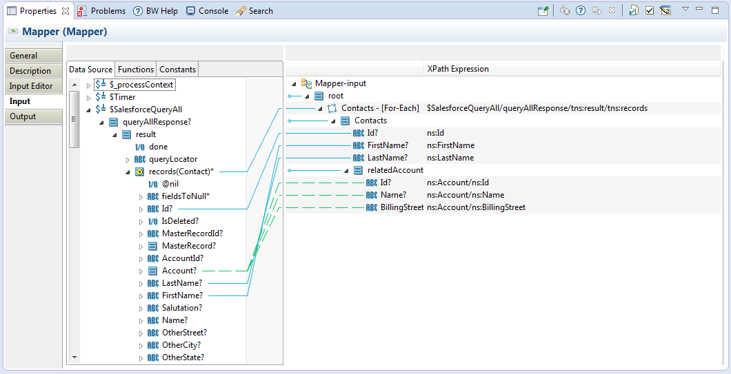 Mapper is a general activity defined in TIBCO ActiveMatrix BusinessWorks. It is used as the data consumer of the Salesforce Query All activity.