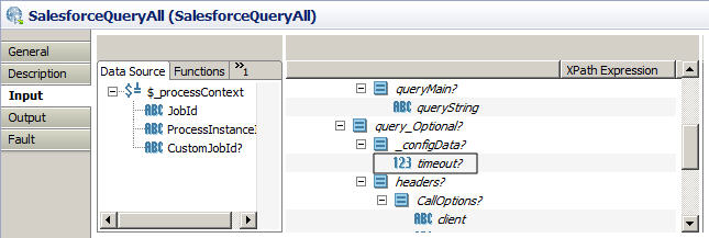 When configuring the Salesforce activity used in a process, you have to set the timeout value for the activity. For example, for a Salesforce Query All activity, you have to set the timeout value as shown in the following figure: