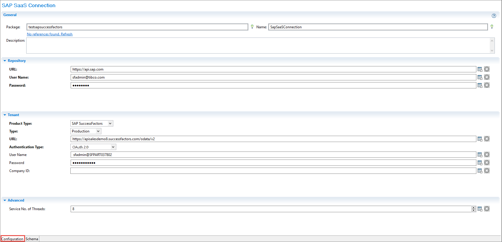 - Configure the SAP SaaS Connection resource in the displayed editor, as described in SAP SaaS Connection.