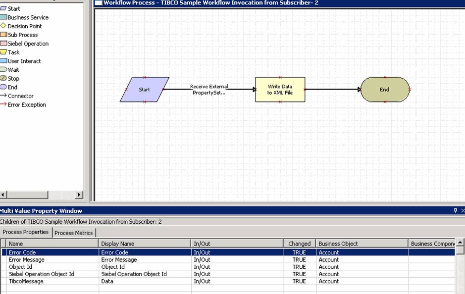 TIBSiebelAdapterWorkflowSubInvoke.xml. - Right click the TIBCO sample workflow Invocation from Subscriber from the list of Workflow Processes and select Edit Workflow Process in the menu.
