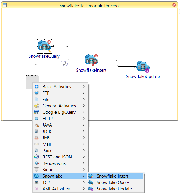 Note: A Snowflake Connection shared resource is required when configuring the activities. For details on creating the Snowflake Connection shared resource, see