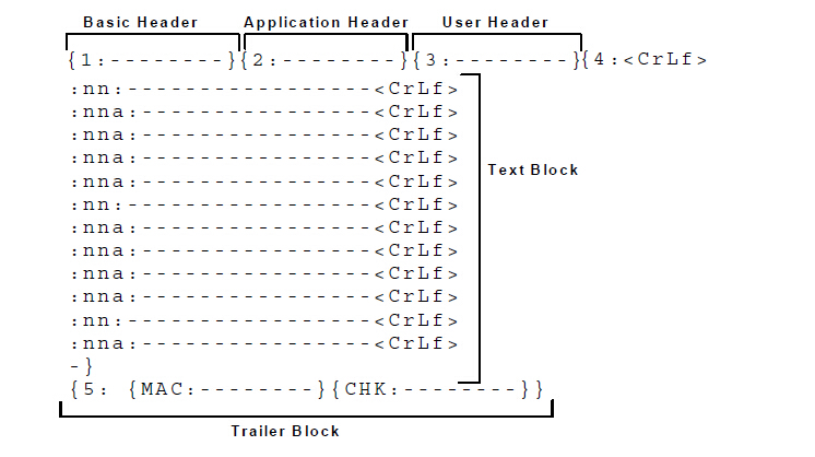 The following figure is a graphical representation of a typical SWIFT MT message:
