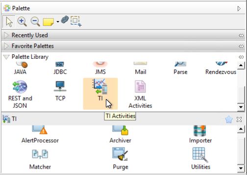 The Transaction Insight® (TI) Palette contains activities for TIBCO ActiveMatrix BusinessWorks™ Plug-in for Transaction Insight®.