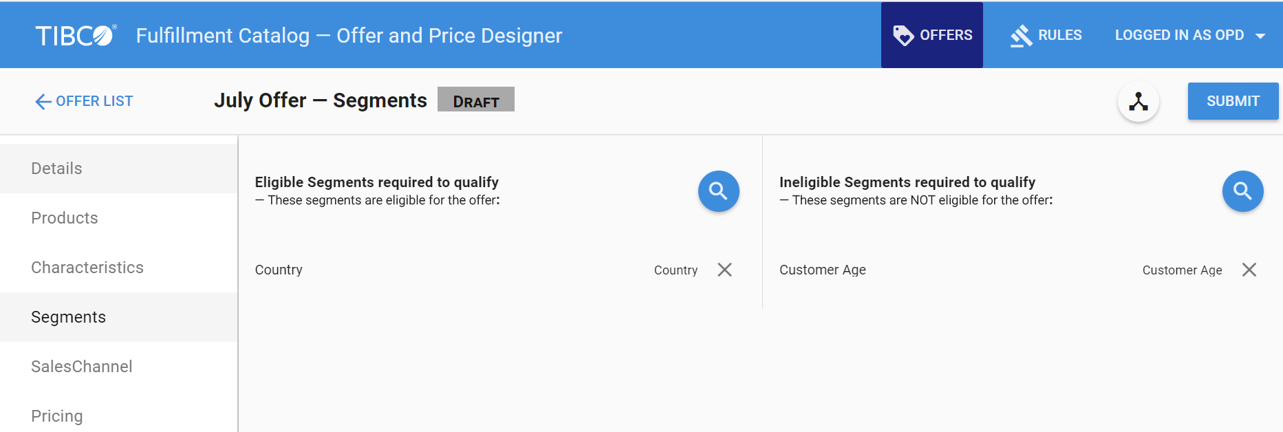 You can add segments to an offer only if it already exists in the Fulfillment Catalog enterprise. Contact the administrator to add segments in the Fulfillment Catalog enterprise.
