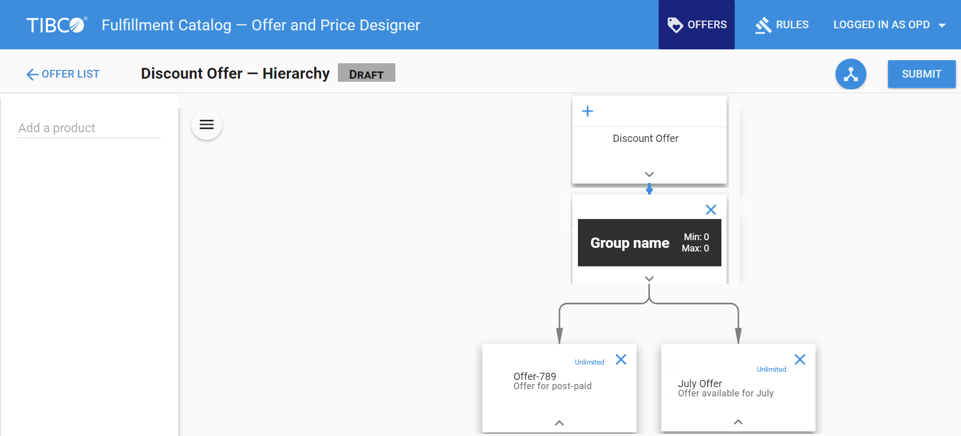 You can use the graph view to make modifications to the offer using drag and drop and other UI extensive elements.