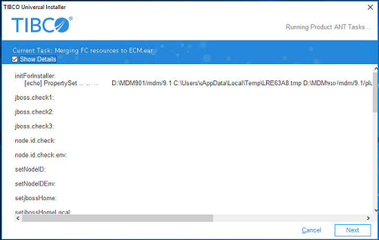The installer merges the TIBCO Fulfillment Catalog resources into the TIBCO MDM $MQ_HOME/ECM.ear file for deploying TIBCO Fulfillment Catalog. The installer also deploys the merged ECM.ear file to the application server.