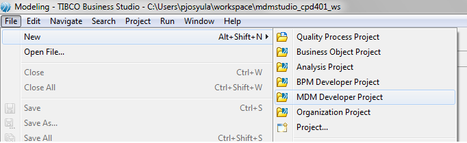 - Click File > New > MDM Developer Project.