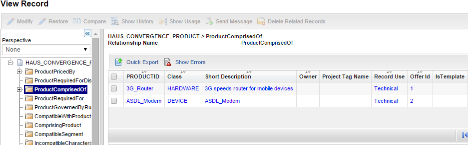 Any new component represents a logical classification, and components may be built up from other components (for example, a Device component might be composed of other Device components). It is important to note, therefore, that the list of component classifications does not represent the number of levels allowed when creating a product offering, it merely represents common classifications of a component. To state things more succinctly, the complexity of the products you model is not limited by the TIBCO MDM Telco data model, for example, you can have a Product Offering consisting of any number of components, that in turn may be built up by other components, recursing down to however many levels of componentization you desire.